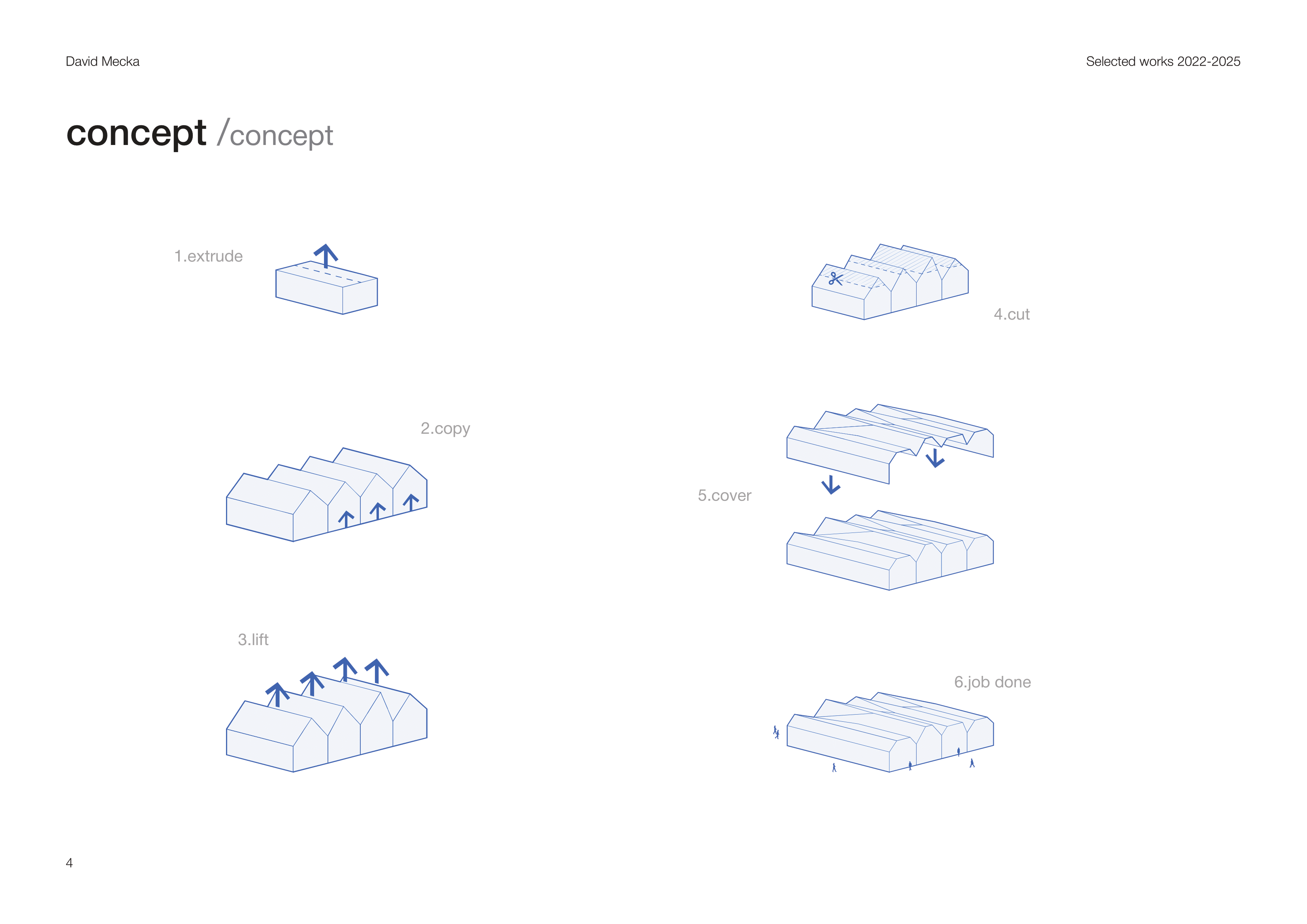 The building is part of the Regen Village concept, focused on sustainable and self-sufficient living. Each residential unit has a single floor, and the building is surrounded by a polycarbonate greenhouse with vertical farms to support on-site crop cultivation. The greenhouse is easily accessible from the living spaces, fostering a connection between the residential area and the growing zone, while minimizing the building's ecological footprint. This design aligns with Regen Village principles, combining modern housing with eco-friendly technologies.