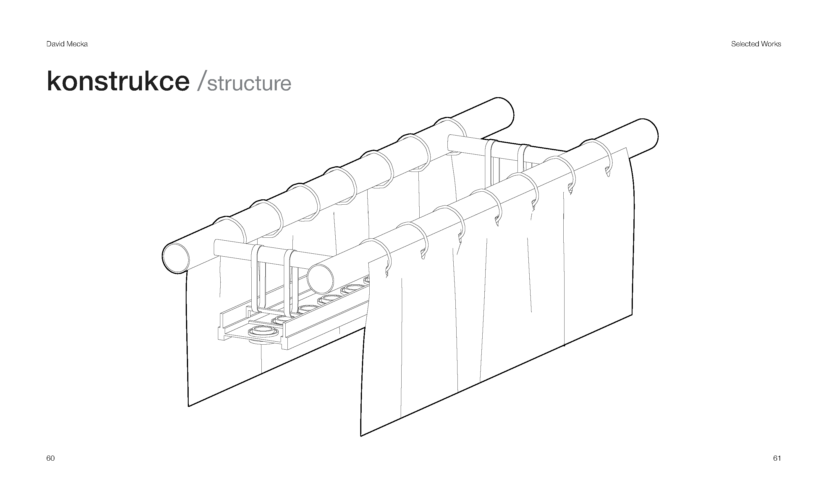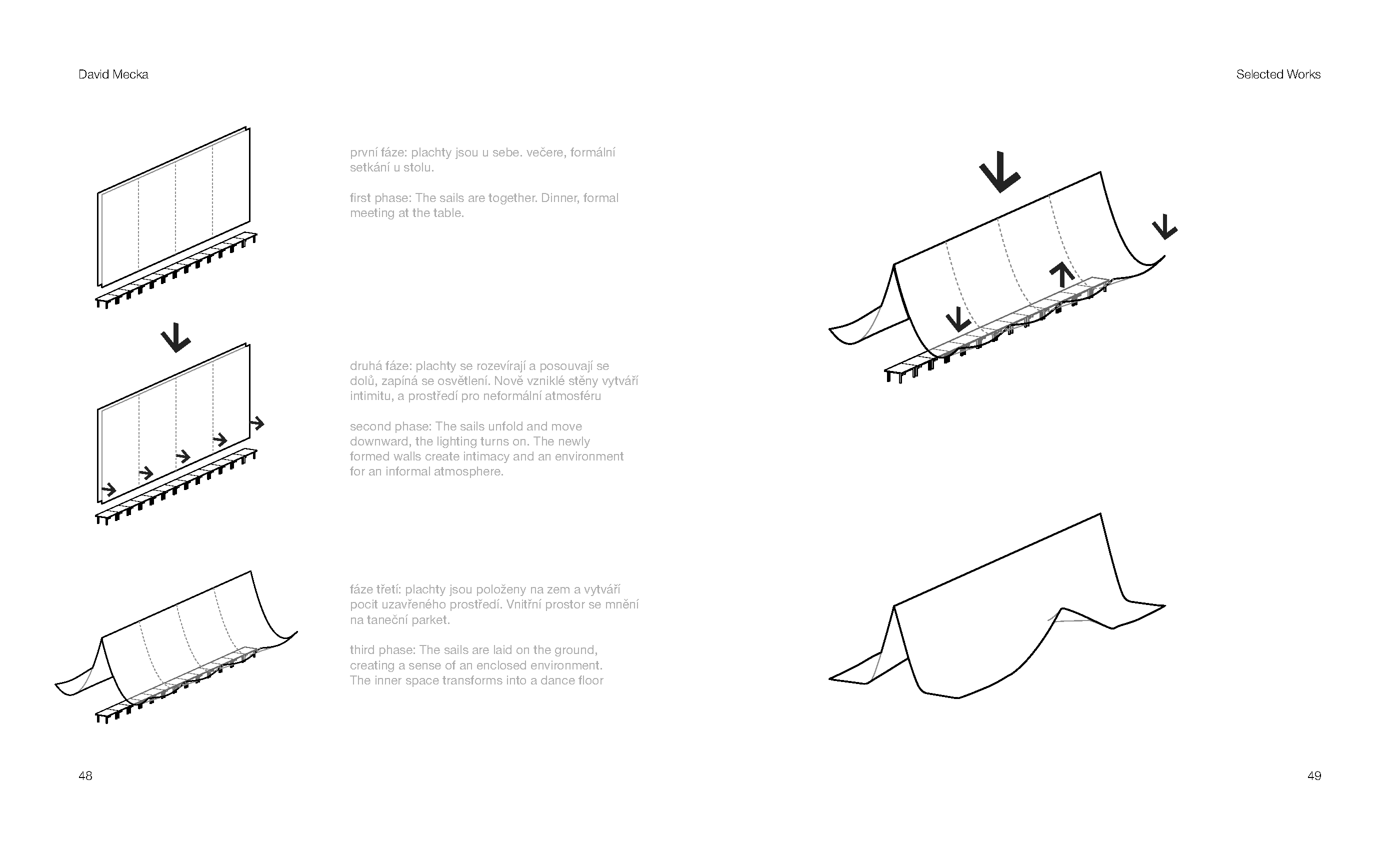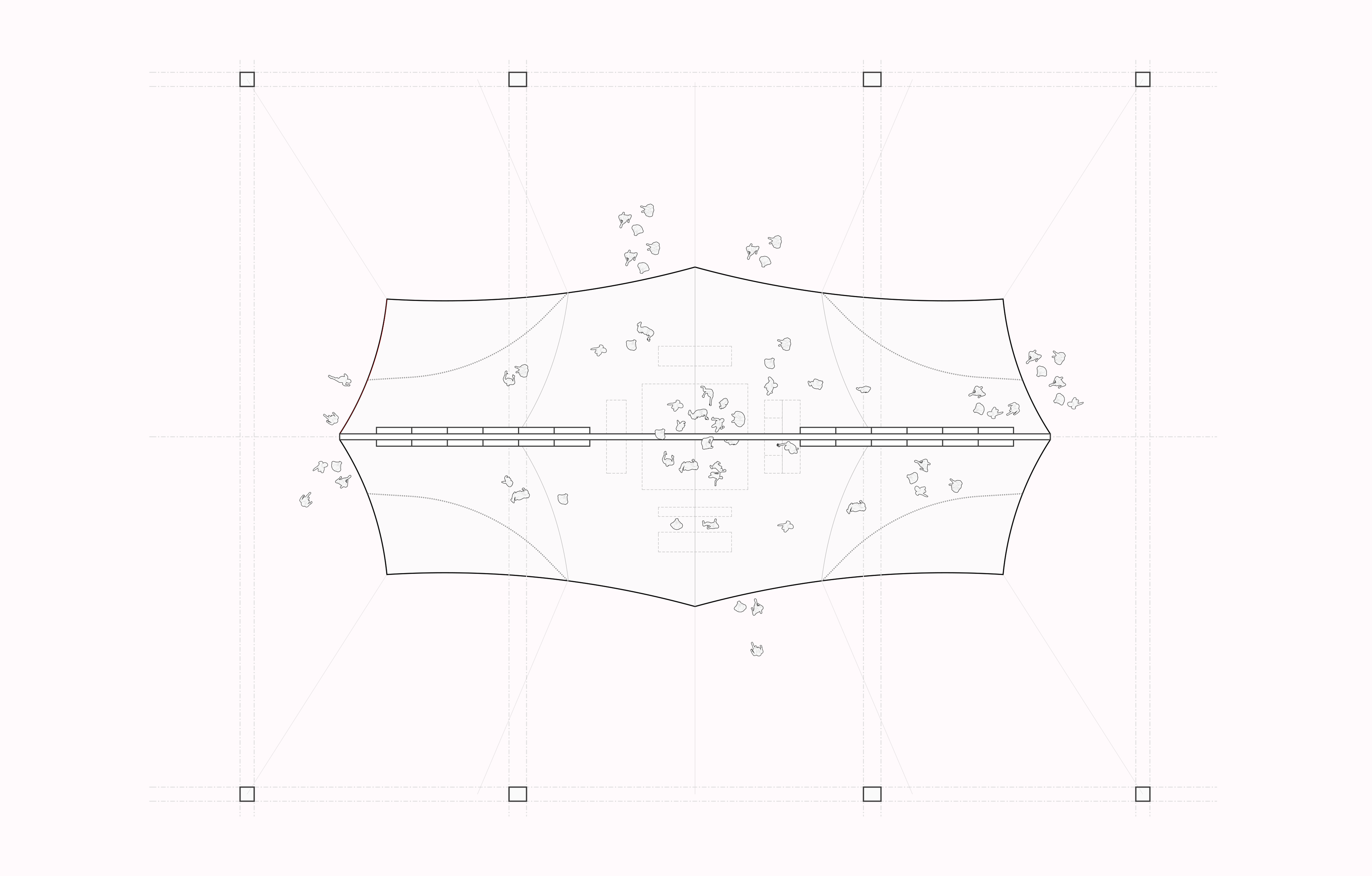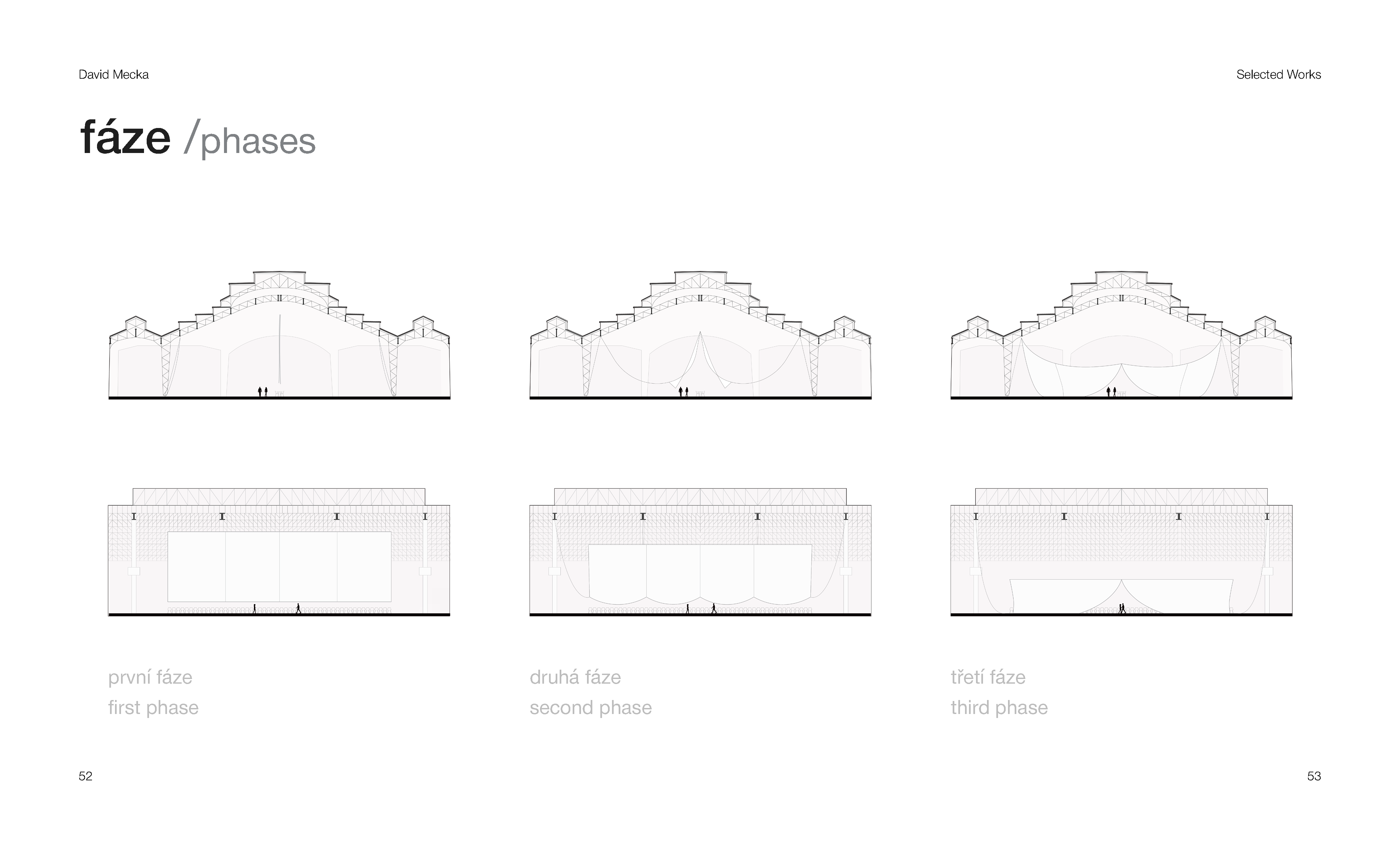 The tent is a lightweight, tent-type structure designed for flexible use at events. It features three adaptable phases that adjust to the current needs throughout the event, allowing for versatile use of space. The structure is easy to assemble and can be adapted to various environments and occasions.